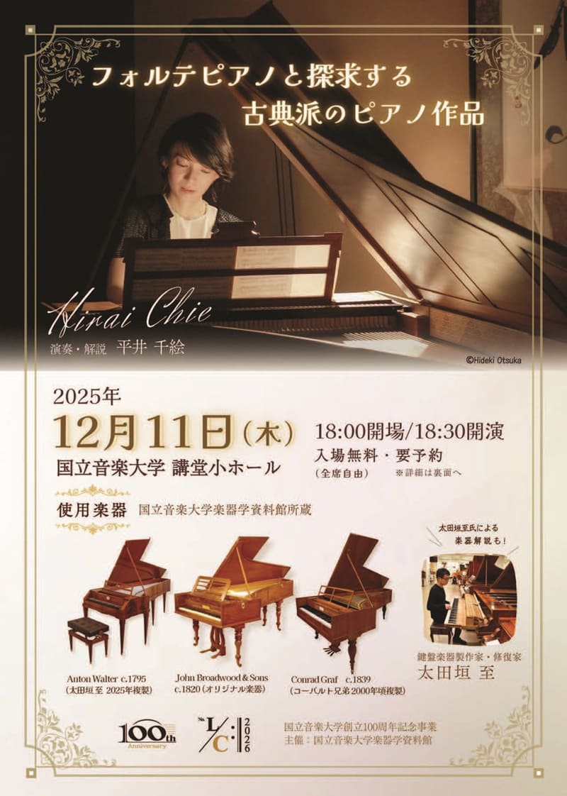 国立音楽大学100周年記念事業の一環として、国立音楽大学楽器学資料館主催のレクチャーコンサートに出演することになりました。