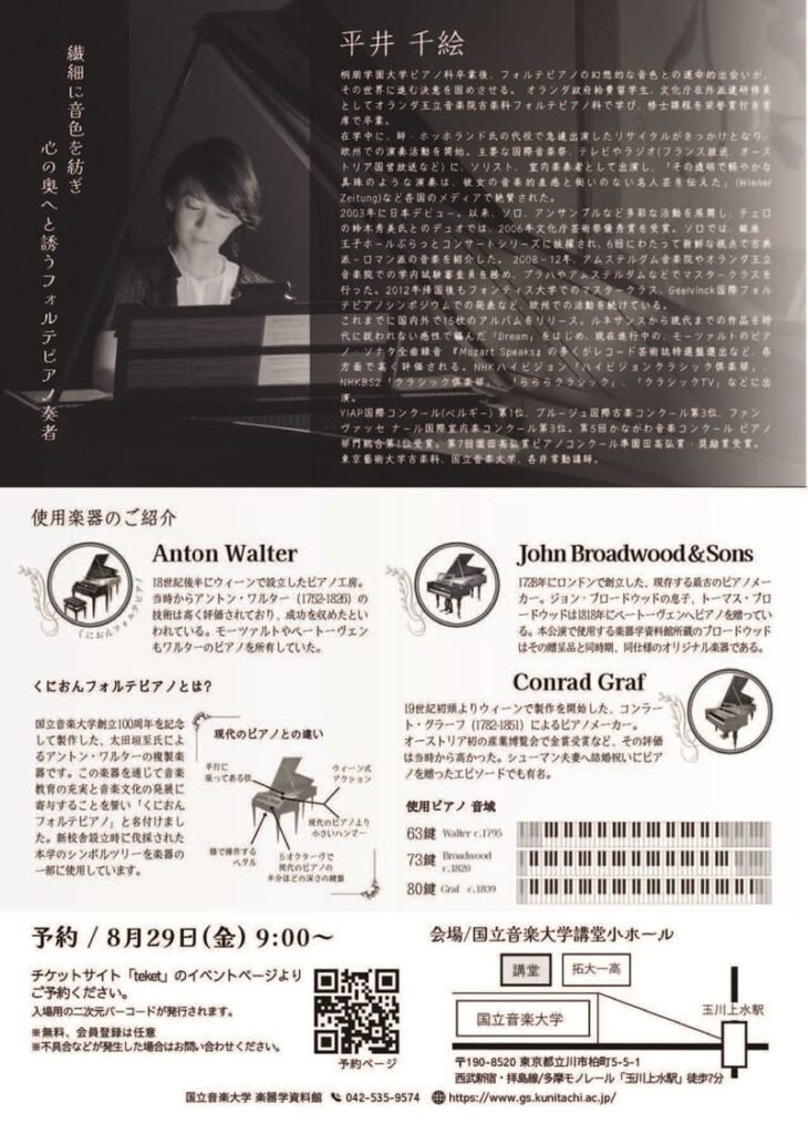 出演:平井 千絵(フォルテピアノ演奏・解説)