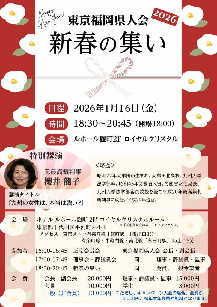 | 内容 | 2026年 東京福岡県人会新春の集い