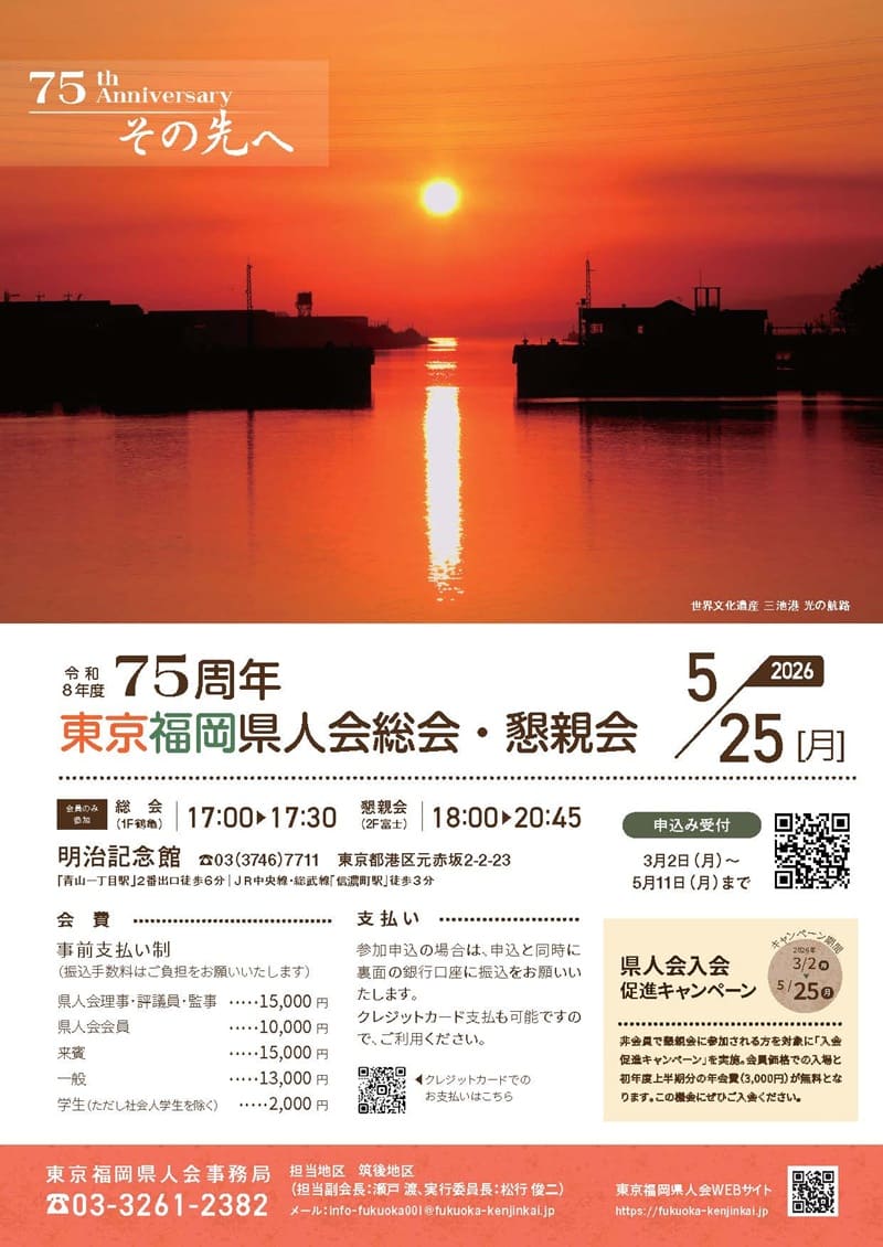 内容 2026年度 75周年 東京福岡県人会 総会・懇親会